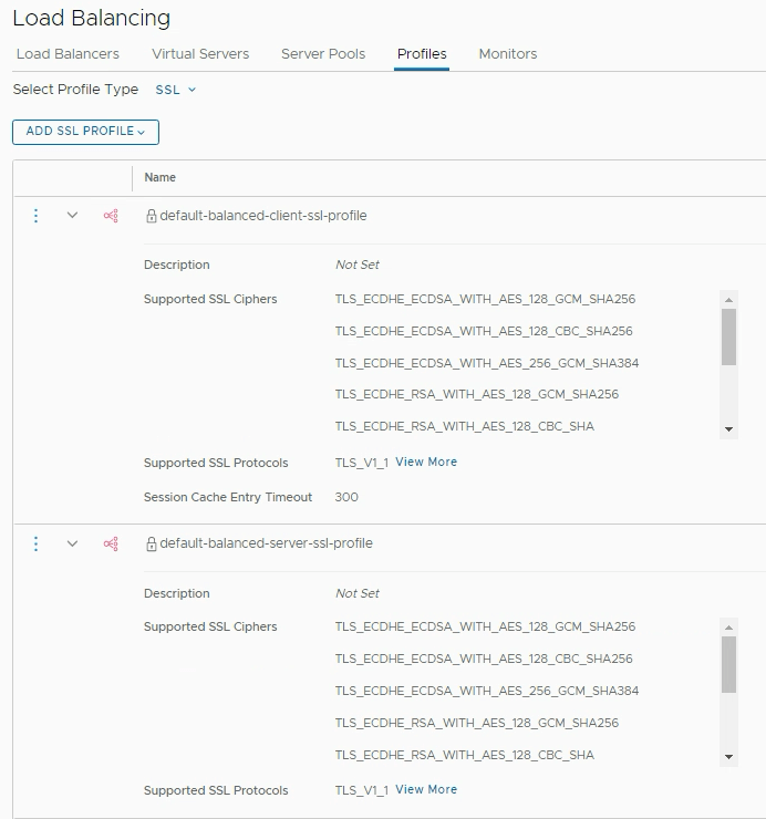 I was using the default-balanced-client/server-ssl-profiles that come with NSX-T, which support a broad range of ciphers.