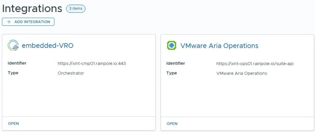 Click the Integrations tab, Here we can see that both the embedded vRealize Orchestrator, and VCF Operations have been integrated.