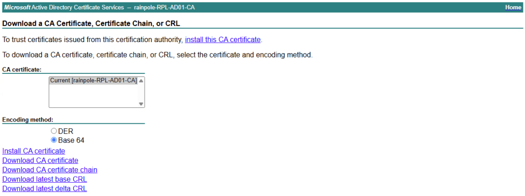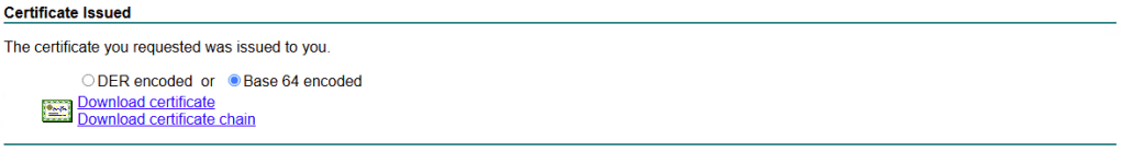 Select Base 64, and “Download CA certificate chain”, it will send you a .p7b file.