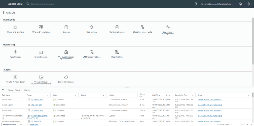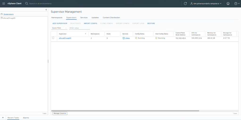 To check on this, click the vSphere Client, and then select Supervisor Management.