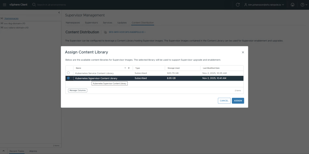 Select the Supervisor content library. Click Assign.